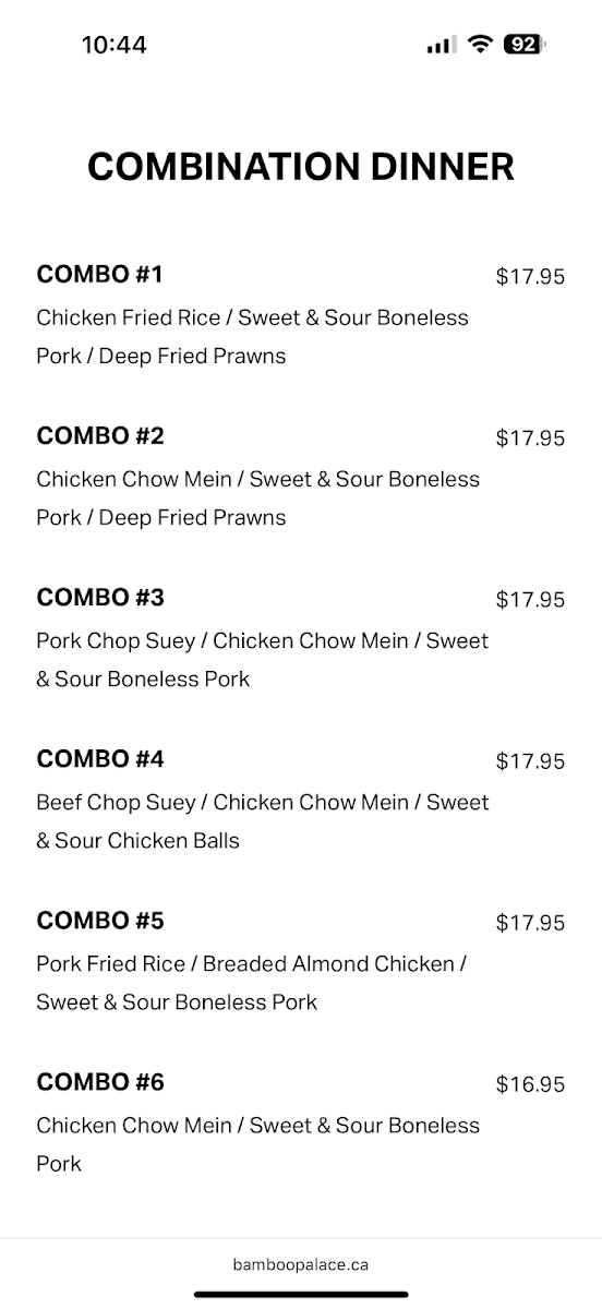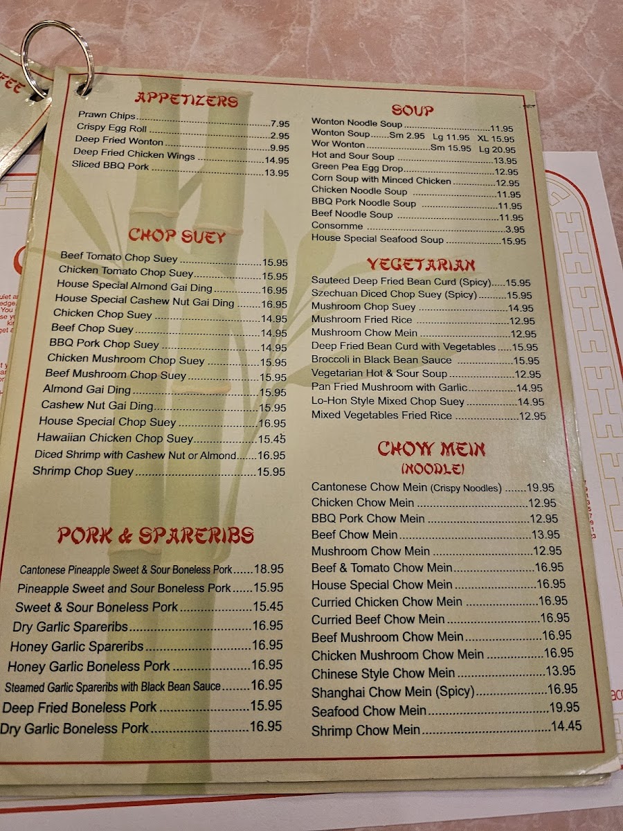 The menu at Bamboo Palace brings a straightforward and comforting approach to Chinese dining, offering familiar favourites alongside traditional takes on Cantonese-style dishes. Whether you’re stopping by for a casual lunch or settling in for a relaxed dinner, the selection includes hearty plates that suit a variety of appetites and occasions.