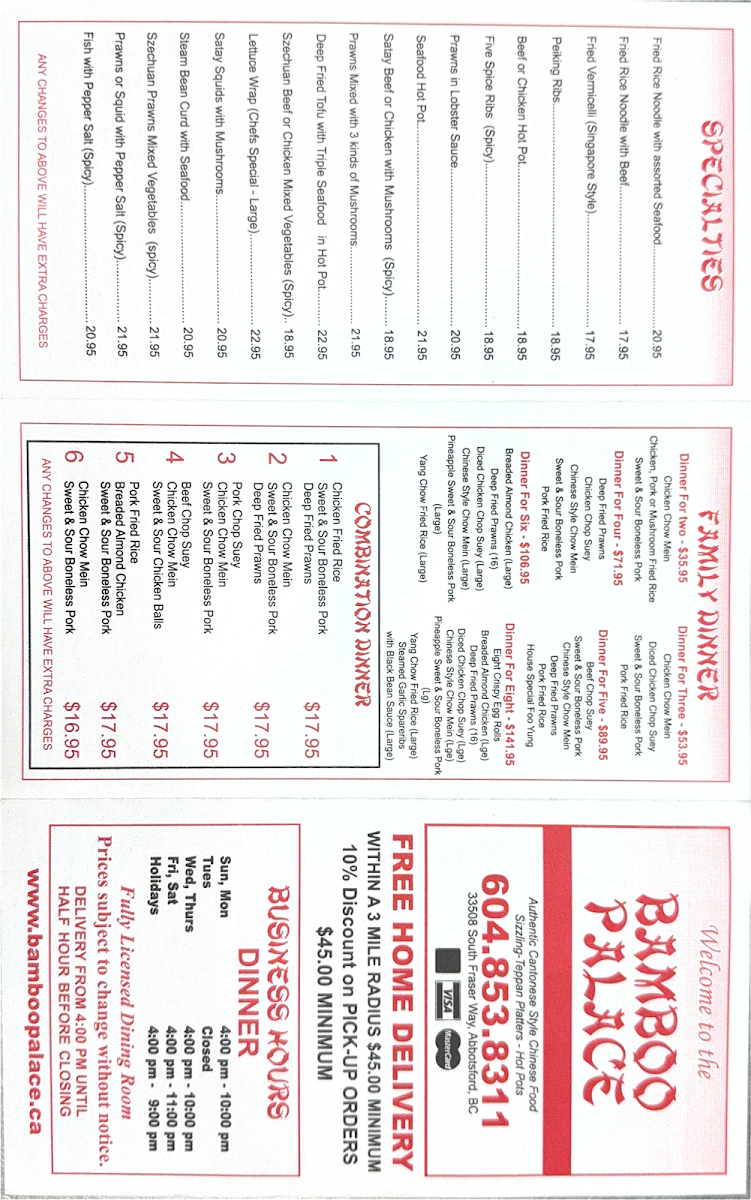Bamboo Palace Menu